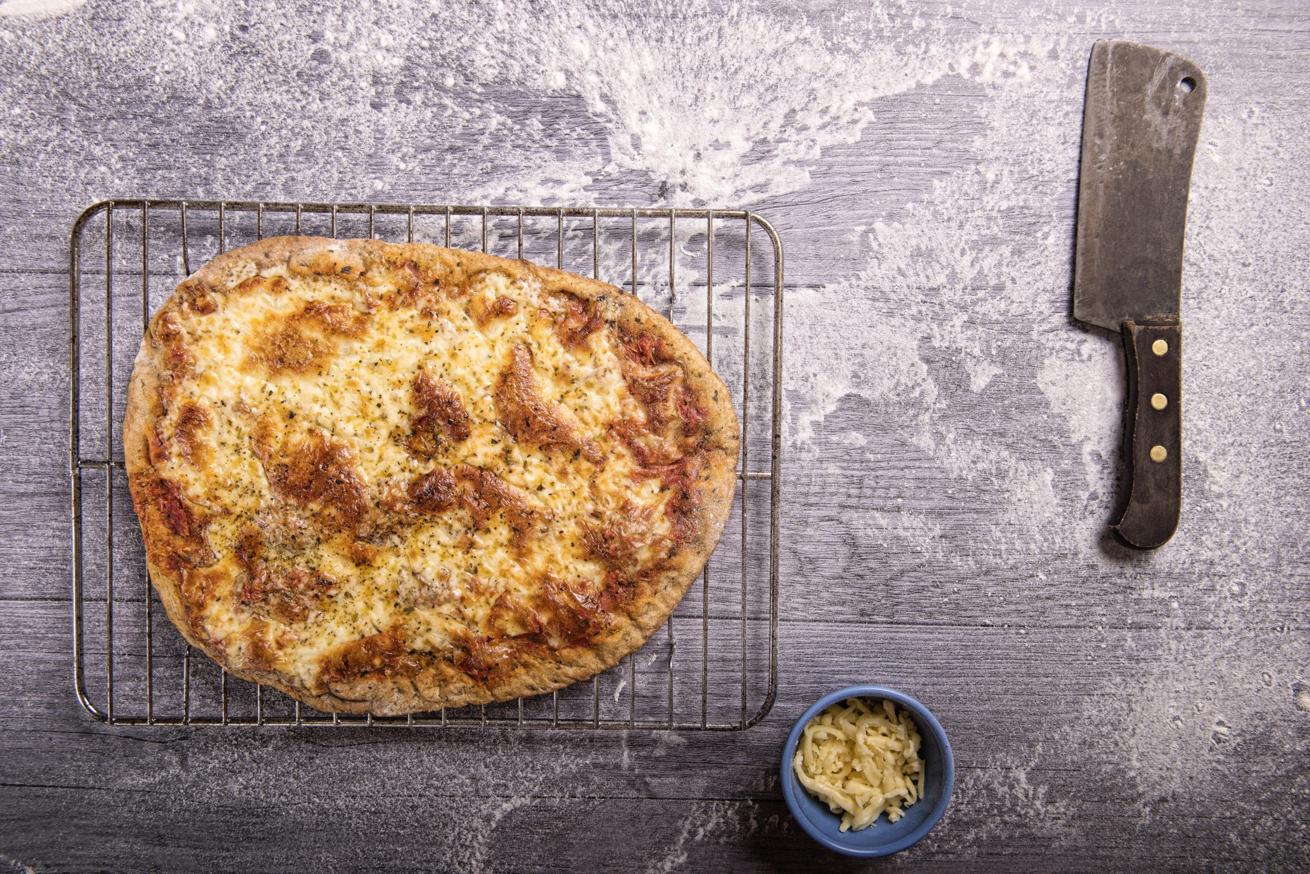Salsa de tomates, muzzarella, provolone y orégano