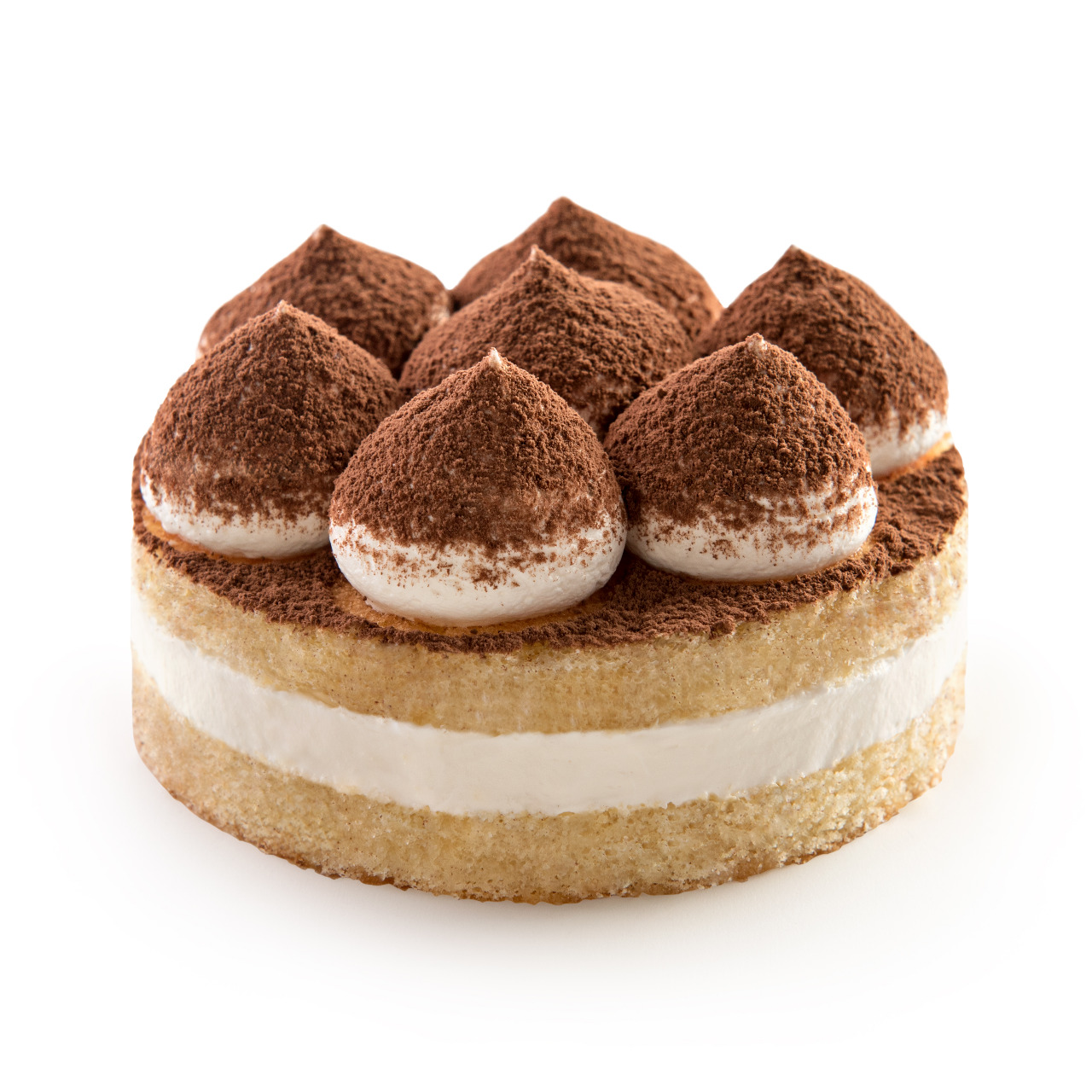 Tradicional combinación italiana de bizcochuelo humedecido con licor al café, queso crema, crema chantilly, espolvoreado con cacao amargo.