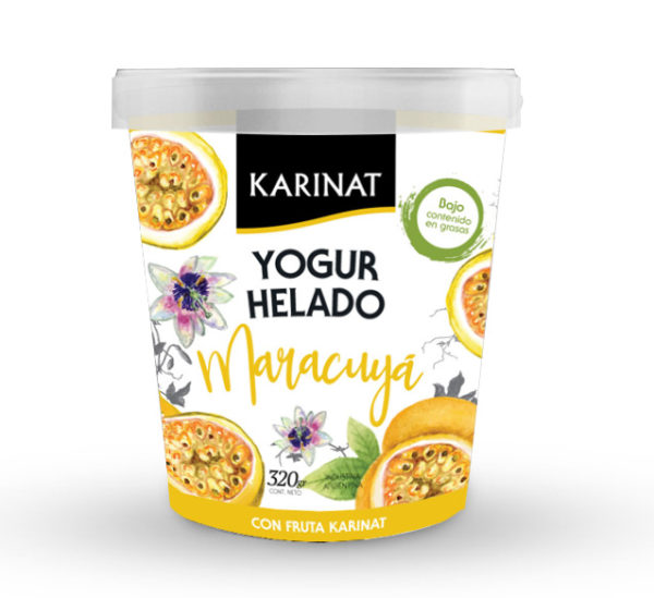 Riquísimo y suave Yogur Helado con topping de Maracuyá